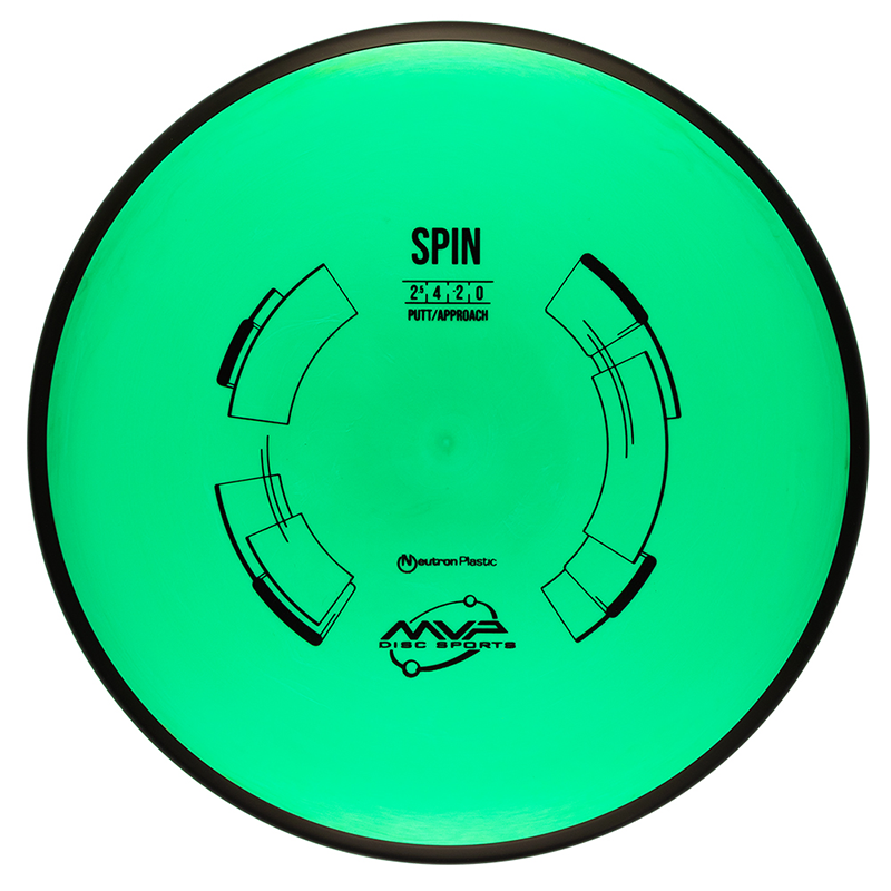 MVP Spin er en understabil putter. Den har en dyp profil lik den til Ion og Anode, hvilket gjør den til super til kastene du trenger å gli, eller seile nedover som en fallskjerm. Discens kontrollerbare understabilitet gjør den egnet for både nye og viderekomne spillere. Spin er best karakterisert ved dens reaksjon på kraft og den behagelige turn. På kort avstand er Spin en sikt-og-kast-disc, men på innspill og driveavstand vil Sping vise en liten turn som kan bli manipulert av kasteren. Spin er en putter som spillere med alle slags putteteknikk eller ferdighetsnivå kan kaste rett.