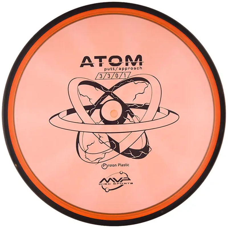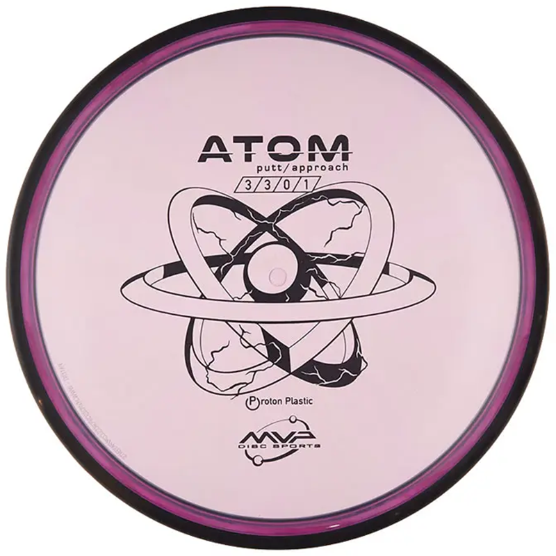 Proton Atom er en rettflygende putter fra MVP med relativt lav profil. Den sitter godt i hånda og har en veldig god holdbarhet grunnet Proton-plastens gode kvalitet. Atom er perfekt til kontrollerte backhand hyzerflip drives og touch-forehand innspill i nærheten av kurven.